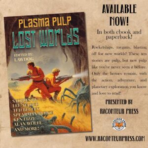 “Step into ten stories of vibrant universes, where gleaming rays of energy shape the future and the past collides with the fantastic unknown. This collection of short stories invites you to explore a genre that is often called “Raypunk” or “Raygun Gothic,” but we call “Plasma Pulp”—because “punk” is overused, and we can. We bring you the electric optimism of retro-futurism, blending sleek technology of the future with the Old School spirit of adventure. Here, the impossible becomes tangible through visions of shimmering cities, heroic inventors, and cosmic mysteries illuminated by pulsating light. Within these pages, you will encounter daring escapades and enigmatic characters who navigate a landscape defined by gleaming technology and surreal possibilities. Whether it’s battling sinister forces with futuristic weaponry or unraveling the secrets of radiant power, each story pulses with the incandescent energy of plasma pulp’s unique vision.”