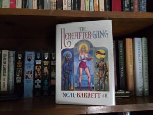 I just finished re-reading Neal Barrett, Jr.’s The Hereafter Gang. It’s probably been twenty years or more since I first read it and I wanted to see if it held up. Did it? Mostly. It seems my memory of the book was primarily of the last third, the final act. My response this time to parts of the first two acts, filled primarily with unlikeable characters behaving…poorly, was less light-heartedly accepting than younger Ken’s had been. Maybe I’m getting too sensitive in my old age.