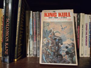 It seems to me that Kull was rather influential. And perhaps not only to John Milius. Wheel of Time fans (I’m not one, but I did read the series) might find this line familiar: “The Wheel turns and nations rise and fall; the world changes, and times return to savagery to rise again through the long ages.” Robert Jordan, of course, wrote some Conan novels, so it would come as no surprise to learn he was also familiar with Kull.