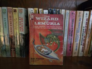And I got exactly what I expected from The Wizard of Lemuria. Had I started reading with high expectations, I would not have enjoyed it nearly as much as I did. Carter dishes up a barbarian buffet taken straight from institutional-sized cans of generic grub. Northern barbarian with a black mane of hair? Check. Mercenary? Check. Heist in a tower? Check. Giant serpents? Check. Magic sword? Check. Beautiful princess? Check. Gladiatorial arena fight? Check. Carter gleefully cherry-picks all the good stuff, slots one item into each ten page chapter, ties it all together with a world-saving plot driven by a helpful wizard and a handy-dandy flying machine to zip the hero about the map to hack up the bad guys. There you go; we’ve got a tight-paced, fast read: a dollar-meal of a novel.